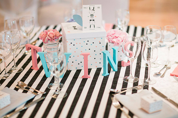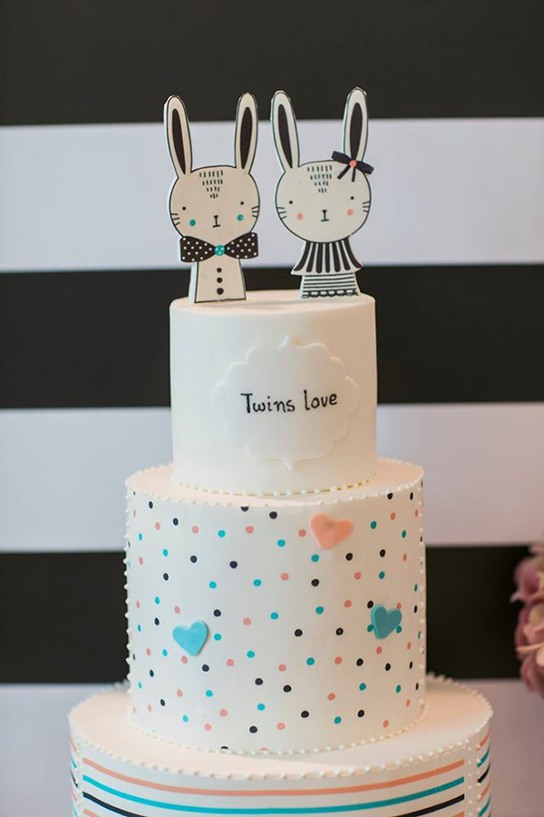 Πολύ όμορφες ιδέες για βάπτιση διδύμων με θέμα το bunny και με λεπτομέρειες σε ροζ, γαλάζιο αλλά και μαύρο – ένα χρώμα που δεν βλέπεις συχνά σε βαπτίσεις… αλλά σήμερα η Rock Paper Scissors μας πείθει πως πρέπει να το τολμήσετε!