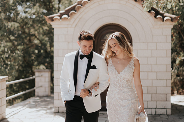 Ολόλευκα τριαντάφυλλα, λυσίανθοι κι άλλα ρομαντικά άνθη συνδυάζονται αρμονικά με πλούσιο ευκάλυπτο για να στολίσουν με τον πιο όμορφο τρόπο τον καλοκαιρινό γάμο της Jamie και του Πάνου. Το Anthopoleio Zerbera, με τις πλούσιες ανθοσυνθέσεις της, δημιούργησε μια υπέροχη είσοδο εκκλησίας, εκεί όπου συναντήθηκε το ζευγάρι για να ακολουθήσει το μυστήριο του γάμου του. Η Jamie για την ημέρα του γάμου της επιλέγει ένα στενό νυφικό φόρεμα από Justin Alexnader με αρχοντική δαντέλα σε όλο του το μήκος και διακριτικές λάμψεις που αναδεικνύουν το στυλ της, προσφέροντας ταυτόχρονα αστείρευτη κομψότητα στο σύνολο της. Το ίδιο ρομαντικό σκηνικό επικρατεί και στην γαμήλια δεξίωση, όπου λευκά κεριά και ατμοσφαιρικά φωτάκια απογειώνουν την ατμόσφαιρα με το ζευγάρι να απολαμβάνει στο έπακρον κάθε μοναδική στιγμή του. Εμείς τους ευχόμαστε κάθε καλό κι απολαμβάνουμε μαζί σας όλες τις σχετικές λεπτομέρειες!