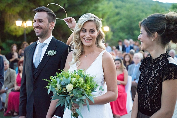 H νύφη μοιράστηκε μαζί μας: «Γνωριστήκαμε μέσω κοινής μας φίλης που έγινε και κουμπάρα μας. Από την πρώτη κιόλας συνάντηση μας καταλάβαμε ότι ταιριάζουμε και πως η σχέση μας θα έχει μέλλον. Η πρόταση έγινε στο Πήλιο, στις Μηλιές σε ένα σημείο που έχει βράχια και καταρράκτες. Είχε στήσει την κάμερα δήθεν για να βγούμε φωτογραφίες αλλά η κάμερα ήδη βιντεοσκοπούσε και όταν με πλησίασε γονάτισε και μου έδωσε το δαχτυλίδι.»