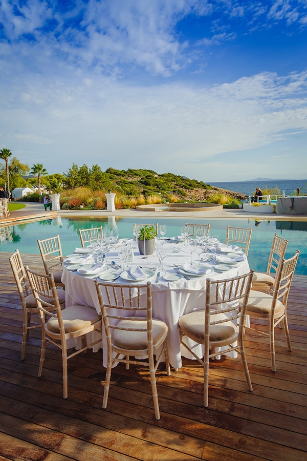 Η κοριτσίστικη βάπτιση που μοιραζόμαστε σήμερα μαζί σας, ξεχειλίζει ομορφιά και ζωντάνια! Οι γονείς αποφάσισαν να πραγματοποιήσουν τη βάπτιση της μικρής κορούλας τους στο χώρο ενός κτήματος με φόντο το πράσινο και το μπλε της θάλασσας. Η ονειρική τοποθεσία έγινε ακόμα πιο όμορφη με την προσθήκη φρέσκων ιβουάρ – ροζ λουλουδιών και γυψοφύλλης σε πλούσια μπουκέτα που στόλιζαν το προαύλιο της εκκλησίας. Μετά την τελετή, όλοι οι καλεσμένοι μεταφέρθηκαν γύρω από την πισίνα του κτήματος όπου πραγματοποιήθηκε η δεξίωση. Στρογγυλά τραπέζια διακοσμημένα με αρωματικά φυτά περίμεναν τους καλεσμένους για ένα ατμοσφαιρικό δείπνο. Απολαύστε κάθε λεπτομέρεια μιας γλυκιάς βάπτισης με φόντο την φυσική ομορφιά του κτήματος!