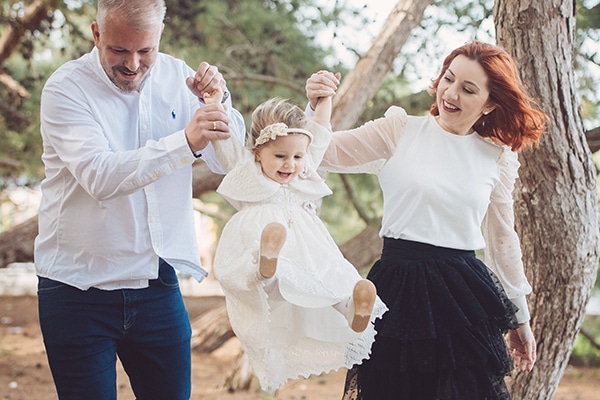 «Όσο για τις φωτογραφίες, ο φωτογράφος μας κάνει πάντα μια οικογενειακή φωτογράφιση πριν την βάπτιση έτσι ώστε να υπάρξει μια επαφή με τον φακό για όλους μας. Ήταν κάτι που το απολαύσαμε!! Πήγαμε σε ένα υπέροχο μέρος μέσα στα δέντρα στα τείχη της πόλης του Ηρακλείου. Ακολούθησε η φωτογράφηση την μέρα της βάπτισης και η φωτογράφηση μια βδομάδα μετά όπου πήγαμε στην παραλία των Γουβών κοντά στο Ηράκλειο αλλά και σε μια κοντινή παιδική χαρά μιας και ο αέρας δεν βοηθούσε και πολύ. Βεβαία ήμασταν τυχεροί γιατί αμέσως μετά μπήκαμε στο coronavirus lockdown!»