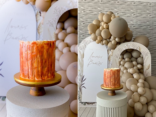 Στον πολύ όμορφο εσωτερικό χώρο του Galu Seaside πραγματοποιήθηκε η δεξίωση της βάπτισης των δίδυμων μικρών Λουκά και Βασίλη, προσφέροντας στους καλεσμένους μια αξέχαστη εμπειρία καθώς έχουν την ευκαιρία να απολαύσουν μαζί με την βάπτιση και το απέραντο γαλάζιο της θάλασσας. Τerracotta αποχρώσεις επιλέχθηκαν από την Treasure Events για να στολίσουν τον χώρο σε συνδυασμό με πήλινα δοχεία εμπλουτισμένα με διάφορες ανθοσυνθέσεις κυρίως από χαμομήλι, κρασπέδια και λουλούδια του αγρού τα οποία προσδίδουν μια πιο καλοκαιρινή χροιά στην διακόσμηση και εναρμονίζονται τέλεια με τον χώρο της δεξίωσης. Η πολύ εντυπωσιακή κατασκευή από μπεζ μπαλόνια τραβάει τα βλέμματα μαζί με τα ιδιαίτερα backdrops που αναγράφονται και τα ονόματα των μικρών αγοριών. Απολαύστε και εσείς μαζί μας αυτές τις πρωτότυπες προτάσεις διακόσμησης και εμπνευστείτε για μια μοναδική βάπτιση!