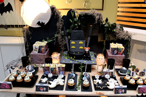 «Αγαπημένα στοιχεία η πινιάτα-νυχτερίδα, το dessert table με τη φωτιζόμενο φεγγάρι και το κάστρο πλαισιωμένο από κισσό και φυλλώματα, τα βαζάκια-μούμιες. Όλος ο σχεδιασμός του party βασίστηκε σε diy κατασκευές και ήταν πραγματικά μια πολύ δημιουργική διαδικασία.»