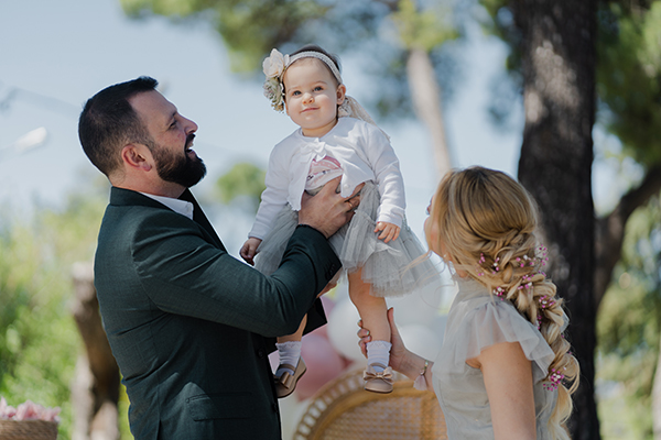 «Αγαπημένη στιγμή από την βάπτιση ήταν πριν ξεκινήσει το μυστήριο και ενώ περιμέναμε τον κόσμο να προσέλθει τα παιχνίδια της κόρης μου με τον μπαμπά και την νονά. Η μέρα ήταν ηλιόλουστη και η μπέμπα ευδιάθετη είχε όρεξη για φωτογράφιση και πολλά παιχνίδια!»
