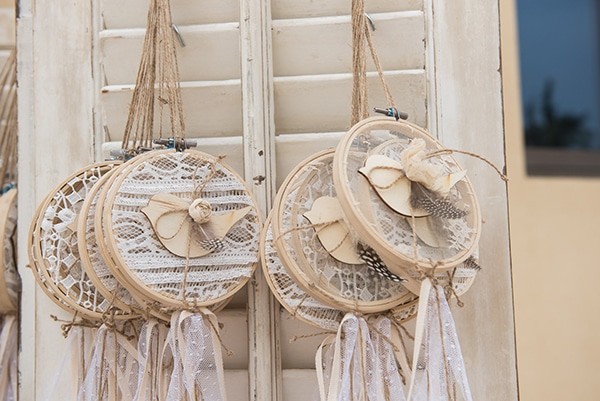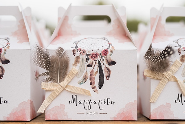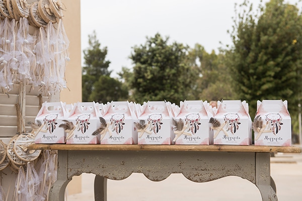 Σήμερα παρουσιάζουμε μια υπέροχη βάπτιση που θα σας χαρίσει πολλά χαμόγελα! Οι γονείς της μικρής Μαργαρίτας επέλεξαν ως θέμα για τη βάπτιση της κορούλας τους το boho στυλ και έτσι η εκκλησία και ο χώρος της δεξίωσης στολίστηκε με όμορφες ονειροπαγίδες και συνθέσεις λουλουδιών δημιουργώντας ένα ονειρεμένο σκηνικό. Μια δροσιστική γωνιά με φρέσκα λεμονάδα και γλυκά στήθηκε στο προαύλιο της εκκλησίας, ενώ ένα άκρως εντυπωσιακό candy bar με φόντο χειροποίητα τελαράκια στόλιζε το χώρο της δεξίωσης και προσκαλούσε μικρούς και μεγάλους να απολαύσουν εύγεστες γλυκές λιχουδιές. Απολαύστε όλες τις ξεχωριστές στιγμές αυτής της όμορφης βάπτισης και μεταφερθείτε και εσείς σε αυτό το μποέμ σκηνικό!