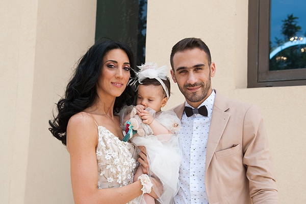 «Η βάπτιση έγινε στην εκκλησία Παναγίας Φανερωμένης Βουλιαγμένης. Είναι μια πανέμορφη εκκλησία με μια κολυμβήθρα πραγματικό κόσμημα, την οποία θαυμάζαμε κάθε φορά που περνούσαμε, οπότε όταν γεννήθηκε η κόρη μας, το πρώτο πράγμα που κάναμε ήταν να κρατήσουμε την ημερομηνία για την βάπτισή της!»