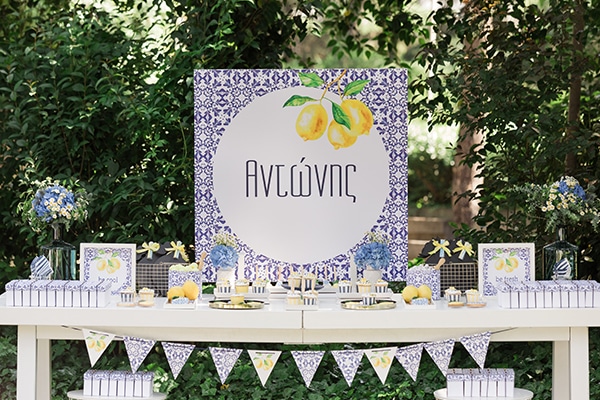 Η ομάδα του Vintage Velanidia Weddings & Events μοιράζεται σήμερα μαζί μας τις πιο stylish ιδέες για στολισμό βάπτισης αγοριού με θέμα το λεμόνι. Ένας υπέροχος συνδυασμός από chinoiserie patterns και stipes σε μπλε αποχρώσεις στολίζουν όλο το σκηνικό. Οι φίλοι και οι συγγενείς του μικρού Αντώνη απόλαυσαν κάθε λογής γευστικές λιχουδιές όπως cup cakes, μπισκοτάκια σε πανέμορφα 3d σχέδια αλλά και υπέροχες συνθέσεις από ορτανσίες και μαργαρίτες προσθέτουν τη δική τους ξεχωριστή νότα. Love!