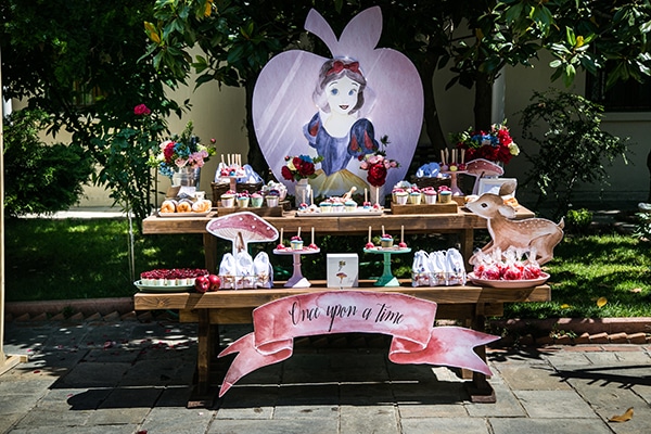 Η ομάδα της Vintage Weddings Events μας εξέπληξε για ακόμα μια φορά, καθώς δημιούργησε ένα παραμυθένιο σκηνικό άκρως ιδανικό για την βάπτιση της μικρής Δήμητρας, μιας και οι γονείς της λατρεύουν τα παραμύθια. Η Vintage Weddings Events μοιράστηκε μαζί μας: «Λόγω της αγάπης των γονιών της μικρής Δήμητρας στα παραμύθια, γνωρίζαμε ότι η επιλογή του θέματος της βάπτισης έπρεπε να προέρχεται από τον μαγικό κόσμο των παραμυθιών. Τα μεγάλα γαλανά μάτια και η λευκή επιδερμίδα της μικρής, μας οδήγησαν να επιλέξουμε ως βασική ηρωίδα την Χιονάτη». Λαχταριστά donuts και cheese cakes, μικρά cupcakes με παιχνιδιάρικους φιόγκους και άλλα σχέδια σε φανταχτερά χρώματα ενθουσίασαν τους παρευρισκόμενους και τους μετέφερε στον κόσμο του παραμυθιού της Χιονάτης. Από την άλλη, ο κάθε καλεσμένος είχε την ευκαιρία να γράψει την δικιά του ευχή για τη μικρή Δήμητρα και να την τοποθετήσει στο όμορφα διαμορφωμένο άσπρο κουτί που βρισκόταν στο χώρο. Τέλος, μια ευχάριστη έκπληξη περίμενε τους μικρούς μας φίλους, καθώς πήραν υπέροχα δωράκια με ζωηρά σκίτσα για τους θυμίζει την μέρα εκείνη! Βλέποντας τις φωτογραφίες, είμαστε σίγουροι θα ενθουσιαστείτε!