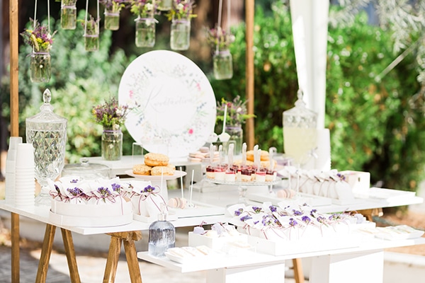 Για τη μικρή Κωνσταντίνα όλα φτιάχτηκαν με πολλή αγάπη και φροντίδα από την ομάδα της Feather Design & Events και εμείς τα μοιραζόμαστε μαζί σας για να πάρετε ιδέες για την βάπτιση της δικιάς σας κορούλας! Τα λουλούδια του αγρού στους φανταχτερούς χρωματισμούς του μωβ, του κίτρινου και του ροζ πρωταγωνιστούν σε κάθε γωνιά του dessert table και μας φέρνουν την άνοιξη στις καρδιές μας με τον καλύτερο τρόπο! Γεμίζουν υπέροχα τις κρεμαστές γυάλες, απεικονίζονται όμορφα στο backdrop, κοσμούν μοναδικά τις μπομπονιέρες. Γλυκάκια και άλλες λιχουδιές γεμίζουν τις γυάλινες πιατέλες και μας ανοίγουν πραγματικά την όρεξη. Οι φωτογραφίες που ετοιμάσαμε πιο κάτω θα σας μεταφέρουν σ’ αυτό το – καθ’ όλα – ανοιξιάτικο σκηνικό! Ready?