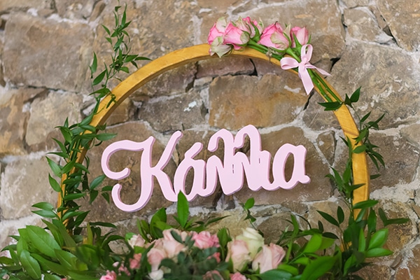 Από Up Events: «Ένα ονειρεμένο floral σκηνικό, δημιουργήθηκε για τη βάπτιση της Κάλλιας!… Τα διακοσμημένα με τριαντάφυλλα και πρασινάδες στεφάνια σε συνδυασμό με τα ξύλινα στοιχεία του χώρου, εντυπωσίασαν τους καλεσμένους! Το αρωματικό κερί, το αρωματικό χώρου και φυσικά τα λουλούδια, δημιούργησαν αρώματα που θα κρατήσουν τις στιγμές αξέχαστες!»