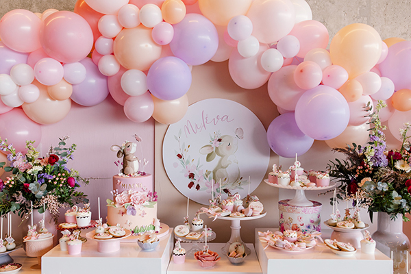 Με κύριο πρωταγωνιστή ένα γλυκό κουνελάκι, το Artopoiein στήνει για ακόμα μια φορά ένα χαρούμενο σκηνικό διακόσμησης, ιδανικό αν προγραμματίζετε την βάπτιση της δικιάς σας κορούλας. Σημείο αναφοράς του στολισμού είναι το υπέροχο dessert table με το κυκλικό backdrop να απεικονίζει το κουνελάκι αλλά και το όνομα της μικρής Μιλένας, ενώ τα παιχνιδιάρικα μπαλόνια που εμφανίζονται στο προσκήνιο σε απαλούς κοριτσίστικους χρωματισμούς συμπληρώνουν αρμονικά το setting. Πολύχρωμες συνθέσεις λουλουδιών από Zelos Flowers σμίγονται ιδανικά μεταξύ τους, σκορπώντας με την παρουσία τους όμορφες μυρωδιές και ζωηρά χρώματα. Ελαφάκια, αρκουδάκια και ελεφαντάκια εμφανίζονται από δω κι εκεί, ενώ την ίδια στιγμή εύγεστες λιχουδιές από γλειφιτζούρια μέχρι donuts ετοιμάζονται για τους καλεσμένους. Υπέροχες μπομπονιέρες σε πουγκάκια τοποθετούνται μαζί με ροζ σουπλά στα τραπέζια, ενώ αντίστοιχα centerpieces ολοκληρώνουν τον στολισμό των τραπεζιών. Ετοιμαστείτε να χαθείτε μαζί μας στην ομορφιά που εκπέμπει η κοριτσίστικη αυτή διακόσμηση βάπτισης!
