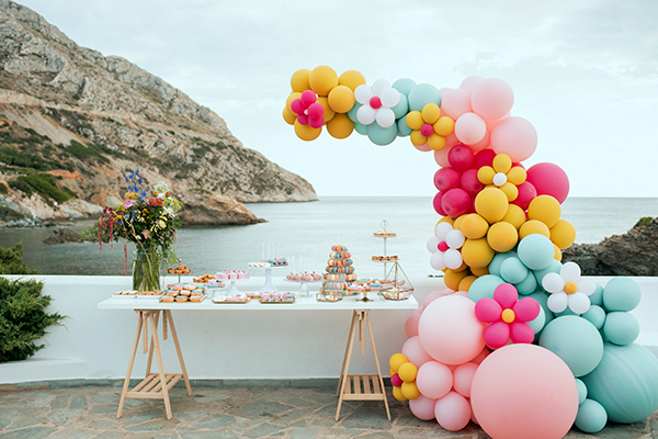 Η βάπτιση της μικρής Ηλέκτρας πραγματοποιήθηκε στο μικρό γραφικό ξωκλήσι της Παναγίας Καταφυγιώτισσας, που αγναντεύει τη θάλασσα του Αργοσαρωνικού και ο φωτογράφος της Demetrio Zico Photography κατάφερε να απαθανατίσει μοναδικές λήψεις! To τραπέζι με τα γλυκά στον προαύλιο χώρο της εκκλησίας έχει την πιο εντυπωσιακή κατασκευή από μπαλόνια σε χαρούμενες αποχρώσεις ενώ η κολυμβήθρα της μικρούλας στολίζεται με τα πιο όμορφα λουλούδια. Η τοποθεσία μαγευτική, οι γλυκές λιχουδιές τόσο λαχταριστές και τα δωράκια – κουκλίτσες για τους μικρούς καλεσμένους τόσο χαριτωμένα που θα σας χαρίσουν τις πιο ωραίες ιδέες για τη βάπτιση και της δικής σας κόρης!