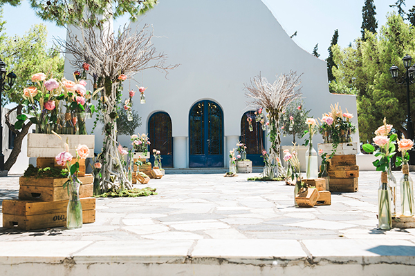 “Το πολύ ξεχωριστό candy bar της Αριάννας, είχε για πρώτη φορά lavender lemonade, αλλά και την αγαπημένη μας pink. Μια ειδική επίσης κατασκευή ήταν το vintage post box στο οποίο οι καλεσμένοι έριχναν τις ευχές τους σε post cards φτιαγμένες για την υπέροχη Αριάννα. Lovely detail, τα ψάθινα καπέλα με φυσικά λουλουδια…”