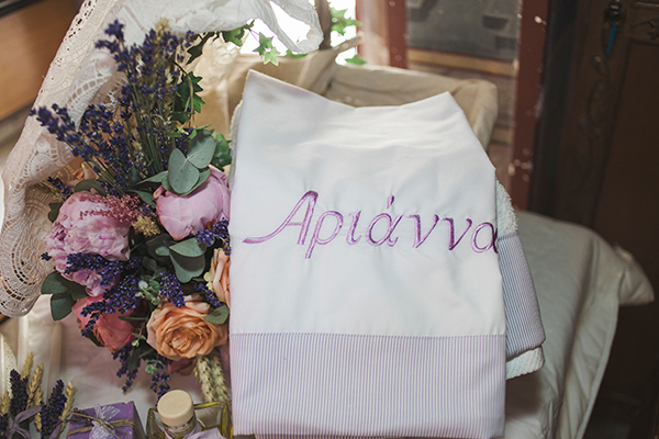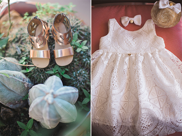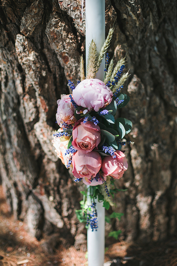 “Τα βαπτιστικά ρούχα ήταν επίσης custom made, με μια μαγική floral λαμπάδα και ψάθινο καλάθι αντί για κουτι βαπτιστικών.Οι μπομπονιέρες ήταν βαζάκια με τριμμένα άνθη λεβάντας και τριαντάφυλλα, με κουφέτα λεβάντας δεμένα με δαντέλα.”