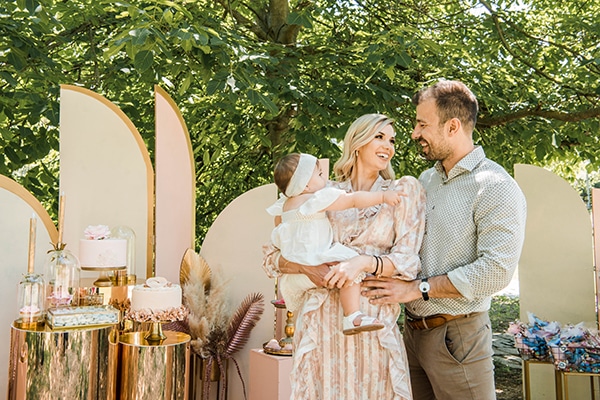 Μια υπέροχη βάπτιση κοριτσιού παρουσιάζουμε σήμερα στο ΕverAfter που ξεχειλίζει από κομψότητα και λάμψη! Με φόντο την φυσική ομορφιά του τοπίου, η ταλαντούχα ομάδα της Oneiropagidas σχεδίασε το πιο εντυπωσιακό σκηνικό για τη βάπτιση της μικρής πρωταγωνίστριας ντύνοντάς το σε dusty pink αλλά και χρυσές πινελιές για ένα luxurious elegant αποτέλεσμα. Δροσιστική λεμονάδα, λαχταριστά γλυκά όπως cake pops, cup cakes και μπισκοτάκια προσκαλούσαν μικρούς και μεγάλους να τα απολαύσουν από το πιο δελεαστικό setting σε χρυσές βάσεις και mirror stands ενώ pampas grass και τριανταφυλλάκια προσέδιδαν το πιο ρομαντικό touch. Η όμορφη μικρούλα λάτρεψε την κάθε ξεχωριστή λεπτομέρεια αυτής της πανέμορφης μέρας και μας χαρίζει μοναδικές λήψεις στην αγκαλιά των γονιών της!