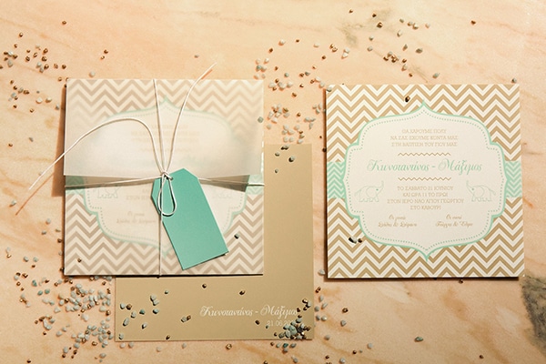Πρέπει να παραδεχθούμε πως οι πιο κάτω προσκλήσεις βάπτισης από Type Center μας έχουν κλέψει την καρδιά! Mint και ιβουάρ συνδυάστηκαν τόσο όμορφα σε αυτή την πρόσκληση δημιουργώντας ένα υπέροχο σχέδιο με μοντέρνα μοτίβα αλλά και vintage πινελιές που εμείς λατρέψαμε! Πρωταγωνιστές δύο παιχνιδιάρικες elephant figures ενώ το πρωτότυπο κλείσιμο με διαφάνεια, διακριτικό σχοινάκι και mint label κάνει την πρόσκληση ακόμη πιο ξεχωριστή! Just Love it!