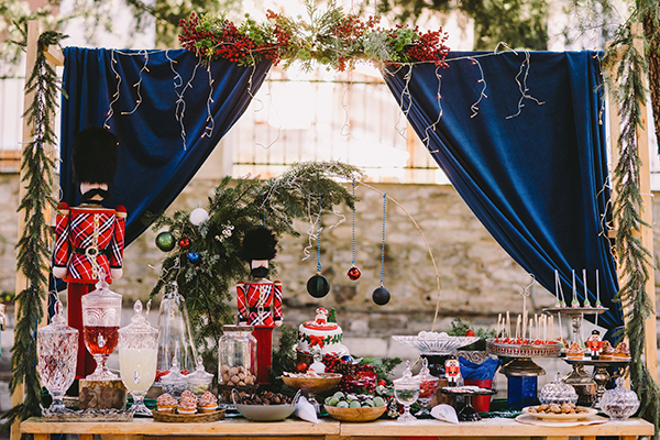 Την απόλυτη χριστουγεννιάτικη διακόσμηση για βάπτιση αγοριού ετοίμασε η ISmaison Events και το κάθε στοιχείο της κυριολεκτικά μας μαγεύει! Κόκκινοι μολυβένιοι στρατιώτες παίρνουν ρόλο πρωταγωνιστικό συνοδευόμενοι από λαχταριστά χριστουγεννιάτικα εδέσματα, τα οποία τοποθετούνται στο ξύλινο τραπέζι και περιμένουν να ενθουσιάσουν μικρούς και μεγάλους. Χριστουγεννιάτικες κρεμαστές μπαλίτσες μαζί με πλούσια πρασινάδα στολίζουν την κυκλική αψίδα, ενώ μπλε κουρτίνες μαζί με λαμπάκια συμπληρώνουν την διακόσμηση του dessert table. Ξύλινα χιονισμένα σπιτάκια μαζί με δωράκια μας τραβάνε από την αρχή την προσοχή, ενώ ένας μεγάλος nutcracker Christmas soldier στέκεται δίπλα από μια εντυπωσιακή vintage καρέκλα μαζί με cozy μαξιλαράκια να ολοκληρώνουν το όλο concept!