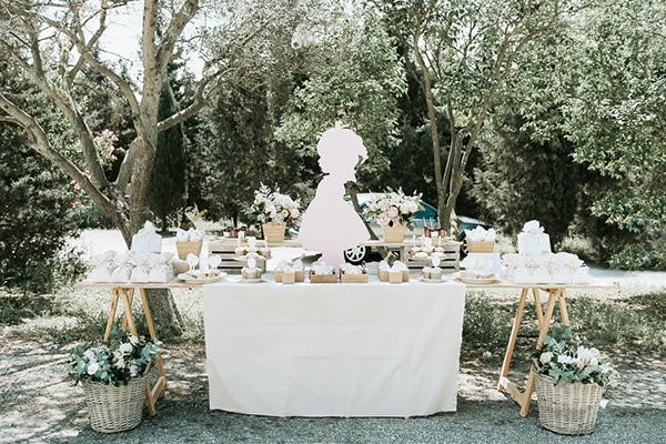Από Vintage Velanidia Weddings & Events: «Μια ρομαντική βάφτιση σε pastel αποχρώσεις και με θέμα την φιγούρα από ένα κοριτσάκι ήταν η βάφτιση της μικρής Σοφίας-Νικολέτας. Ο κατάφυτος, γεμάτος ελαιόδεντρα χώρος της εκκλησίας ήταν απόλυτα εναρμονισμένος με τα χρώματα και το στυλ της βάφτισης. Από το custom σχεδιασμένο προσκλητήριο, τις μπομπονιέρες, και τα δωράκια για τα παιδάκια έως την κατασκευή της φιγούρας από το κοριτσάκι, όλα σχεδιάστηκαν και κατασκευάστηκαν αποκλειστικά για την βάφτιση».
