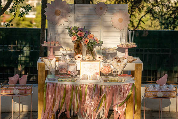 Η βάπτιση της μικρής Ναταλίας Λητώς με θέμα “Little Daisy” η οποία σχεδιάστηκε από το Forever Deco, ήταν ένα σκηνικό γεμάτο ρομαντισμό και τρυφερότητα. Το απαλό ροζ χρώμα με πινελιές απο απαλό κίτρινο και πράσινο κυριάρχησε στη διακόσμηση δημιουργώντας μια γαλήνια και ονειρική ατμόσφαιρα. Donuts στολισμένα με μικρές μαργαρίτες, sugar cookies σε σχήμα μαργαρίτας, λαχταριστά cupcakes και macarons ολοκλήρωναν το candy table προσφέροντας έναν μοναδικό συνδυασμό γεύσης και ρομαντικής αισθητικής. Αυτή η βάπτιση άφησε τις πιο όμορφες εντυπώσεις σε όλους!