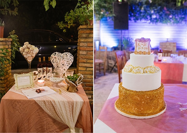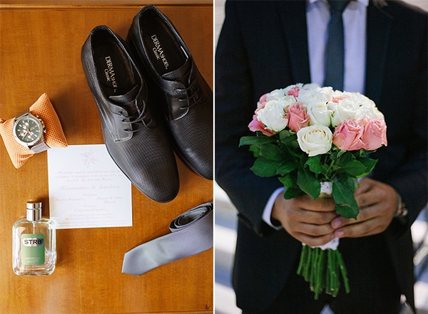 «Η νυφική ανθοδέσμη μου είχε άσπρα και ροζ τριαντάφυλλα. Στην εκκλησία δεν επιλέξαμε καμία διακόσμηση, μόνο στο τραπέζι του γάμου, είχαμε γλαστράκια από κρασούλες σε κάθε τραπέζι και από ένα μπουκάλι κρασί παραγωγής μας, με το μπουκάλι να έχει ετικέτα την φωτογραφία μας, το οποίο άρεσε πάρα πολύ στους καλεσμένους σαν ιδέα.»