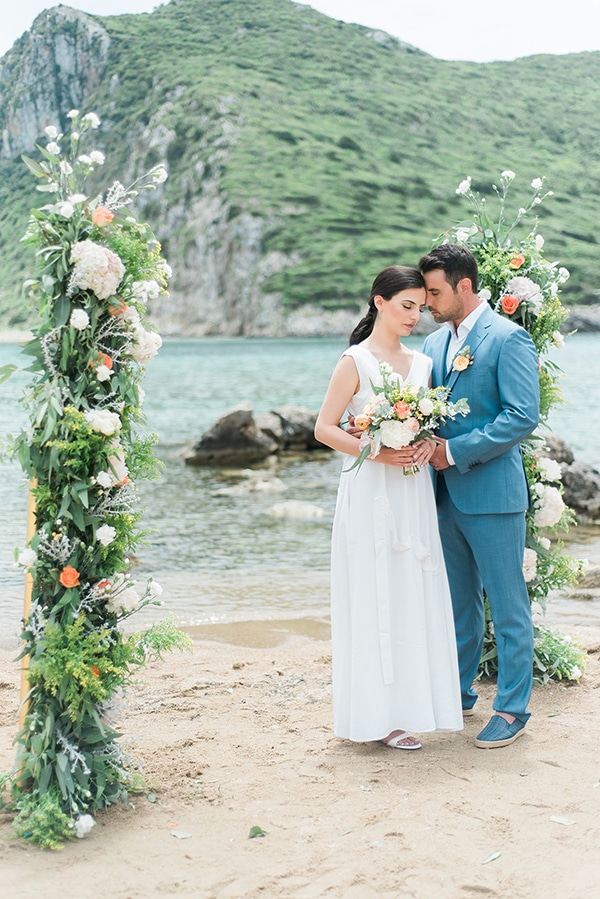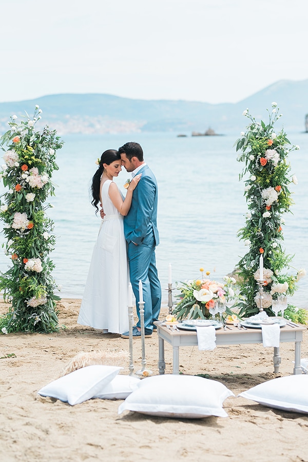 Σήμερα μοιραζόμαστε μαζί σας ένα πανέμορφο styled shoot που ξεχειλίζει από ρομαντισμό και κομψότητα! Με έμπνευση από τον αφρό της θάλασσας, τις ηλιόλουστες παραλίες της Ελλάδας και τις ειδυλλιακές αποχρώσεις του ηλιοβασιλέματος, μια ομάδα από ταλαντούχους επαγγελματίες συνεργάστηκαν και δημιούργησαν ένα ονειρεμένο σκηνικό για έναν ρομαντικό καλοκαιρινό γάμο στην παραλία. Με φόντο το απέραντο γαλάζιο, το ερωτευμένο ζευγάρι αντάλλαξε όρκους αιώνιας αγάπης κάτω από δύο εντυπωσιακές στήλες διακοσμημένες με πανέμορφες συνθέσεις λουλουδιών. Πιο κάτω, ένα vintage σκηνικό στήθηκε για το όμορφο ζευγάρι, διακοσμημένο με μυρωδάτα λουλούδια, κεριά, κρύσταλλα και ένα elegant εντυπωσιακό tableware. H εμφάνιση της γυναικείας φιγούρας ταίριαξε απόλυτα με το ύφος του όλου σκηνικού, φορώντας ένα λινό αέρινο νυφικό φόρεμα συνδυασμένο με λευκά σανδάλια. Η ονειρεμένη μέρα συνεχίστηκε και το απόγευμα, όπου το όμορφο ζευγάρι έπλευσε για την Πήλο μέσα σε ένα όμορφο διακοσμημένο yacht χαρίζοντάς μας μοναδικά στιγμιότυπα καθώς απολάμβανε το υπέροχο ηλιοβασίλεμα. Ετοιμαστείτε να χαθείτε μέσα στην ομορφιά των πιο κάτω φωτογραφιών από Ted Nikolakopoulos Photography!