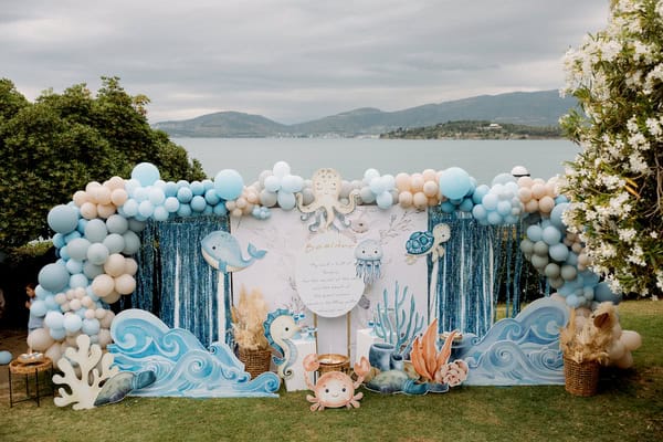 «Το θέμα της βάπτισης ήταν το “κοαλάκι”. Δεν δυσκολευτήκαμε πολύ να επιλέξουμε αυτό το θέμα καθώς από πολύ νωρίς η μαμά του Φίλιππου τον αποκαλούσε έτσι. Για να πλαισιώσουμε το θέμα, επιλέξαμε ένα light μποέμ στυλ με ψάθινες λεπτομέρειες σε παστέλ γήινες αποχρώσεις, φύλλα ευκάλυπτου, αποξηραμένες συνθέσεις με bunny tails και λευκά άνθη. Οι ουδέτεροι τόνοι επιλέχθηκαν για να ταιριάξουν με το πηλιορείτικο τοπίο που συνθέτουν τα πετρόχτιστα καλντερίμια και τα καταπράσινα πλατάνια» μας είπε η μαμά.