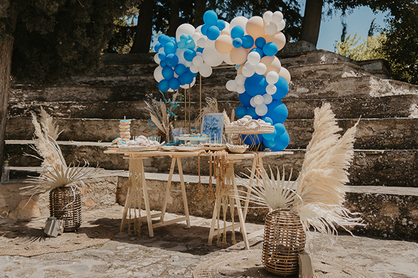 Οι σημερινές προτάσεις διακόσμησης έχουν την υπογραφή του Dezoom Events και πιστέψτε μας ξεχειλίζουν από πρωτοτυπία και ομορφιά! Μέσα από το φωτογραφικό φακό του Evangelos Papadimitriou έχουμε την τύχη να απολαμβάνουμε ένα εκπληκτικό θέαμα από τη βάπτιση του μικρού Μάνου που ακολούθησε ένα μποέμ στυλ στο στολισμό με παιχνιδιάρικες πινελιές σε μπλε αποχρώσεις. Το dessert table φέρει μια εντυπωσιακή κατασκευή από μπαλόνια σε λευκό, μπλε και ιβουάρ που αναδεικνύει όλα τα καλούδια που περιλαμβάνει αυτή η γλυκιά γωνιά. Χειροποίητες δημιουργίες από macramé ντύνουν με ένα μοναδικό τρόπο τα βάζα που γεμίζουν από αποξηραμένα άνθη ενώ την ίδια στιγμή πλεκτά καλάθια και χαλιά ολοκληρώνουν το όλο setting. Λίγο πιο κάτω, το τραπέζι με τις μπομπονιέρες κερδίζει και πάλι την προσοχή μας με το ανάλαφρο στυλ του και τα λαχταριστά marshmallows σε χωνάκια περιμένουν πως και πως τους μικρούς καλεσμένους για να τα δοκιμάσουν! Δείτε αυτές τις ξεχωριστές ιδέες που προτείνει στο στολισμό το Dezoom Events και απογειώστε κι εσείς την μποέμ βάπτιση του παιδιού σας!