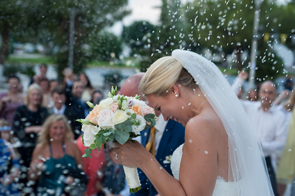 Από την Style Concept: “Ο γαμπρός ονειρευόταν έναν παραδοσιακό ελληνικό γάμο στην Ελλάδα. Το ύφος του γάμου ήταν δροσερό, χαρούμενο και πολύ fun αφού για την προετοιμασία της νύφης συγκεντρώθηκαν όχι μόνο οι φίλες της στην πισίνα του Margi για μπάνιο & cocktails αλλά και ο ίδιος ο γαμπρός! Στη συνέχεια όλη η γυναικεία παρέα ετοιμάστηκε στη σουίτα της νύφης με πολλά γέλια, αστεία και ευχές στην όμορφη και γελαστή νύφη. Ανέμελη διάθεση, όμορφα πρόσωπα, χαμόγελα παντού. Τα χρώματα του στολισμού του γάμου και οι ανθοσυνθέσεις με ολόφρεσκα λουλούδια ήταν σε παστέλ αποχρώσεις ροζ, σωμόν και λιλά συνδυασμένα με φυλλα ελιας προσδίδοντας έναν ελληνικό χαρακτήρα…”