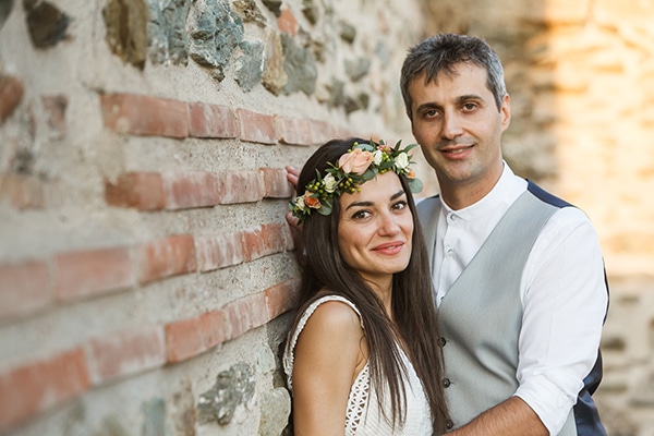 H νύφη μοιράστηκε μαζί μας: “Γνωριζόμασταν καιρό, μέσω κοινής παρέας, ώσπου ήρθε η στιγμή να είμαστε μαζί. Η πρόταση γάμου έγινε όταν μια απλή, βραδινή βόλτα στη Νέα παραλία της Θεσσαλονίκης κατέληξε σε μια ξεχωριστή βραδιά. Βγαίναμε φωτογραφίες… μόλις έστρεψα τον φακό για να τον τραβήξω φωτογραφία, μου είχε προτάξει το δαχτυλίδι!”