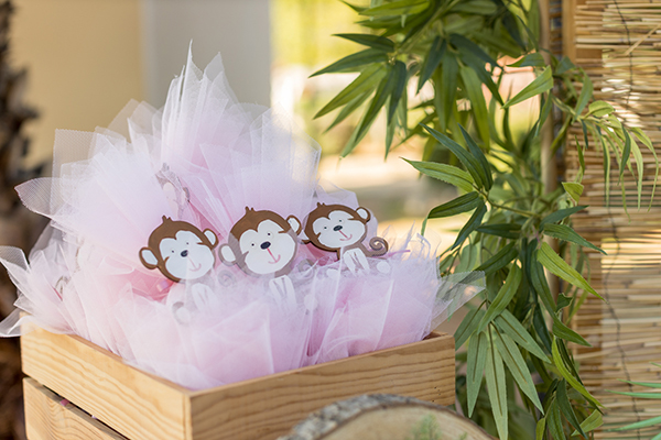 Με θέμα το baby monkey η ομάδα της Dream the Day ετοιμάζει για την μικρή Αθηνά μια ξεχωριστή διακόσμηση σε γήινες αποχρώσεις, μαγνητίζοντας τα βλέμματα μας από την πρώτη στιγμή. Η παιχνιδιάρικη φιγούρα της μικρής μαϊμούς μας χαρίζει τα πιο γλυκά χαμόγελα και γίνεται σημείο αναφοράς του στολισμού, καθώς εμφανίζεται στο ξύλινο backdrop του dessert table, στις κυκλικές βάσεις κορμών, στις υπέροχες μπομπονιέρες όπως επίσης και με ζαχαρόπαστες στα λαχταριστά cupcakes και μπισκότα. Ποικίλα μπαλόνια σε χρώματα του καφέ, λαδί, μπεζ και μουσταρδί πλαισιώνουν με ιδανικό τρόπο το πρωτότυπο backdrop, ενώ το όνομα της μικρής αναγράφεται σ’ ένα κυκλικό στεφάνι με πρασινάδες, το οποίο ολοκληρώνει όμορφα το όλο σκηνικό. Ανακαλύψτε μαζί μας κάθε ξεχωριστή λεπτομέρεια κι εμπνευστείτε για τη βάπτιση του δικού σας παιδιού.