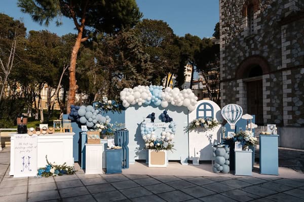 Προτάσεις βάπτισης αγοριού με θέμα το αερόστατο σε γαλάζιες αποχρώσεις