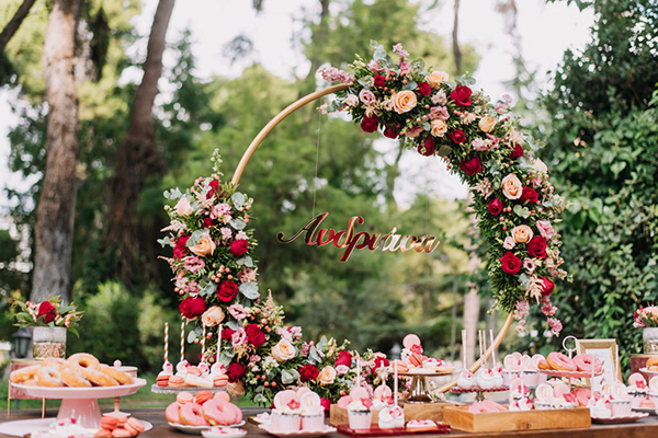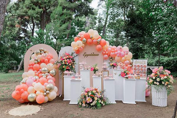 Ένα γεμάτο – από ξεχωριστές λεπτομέρειες και πλούσια εδέσματα – candy table, μια φανταστική κατασκευή από μπαλόνια και υπέροχα λουλούδια...