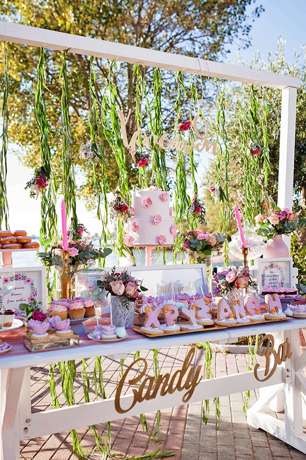 Ένα γεμάτο – από ξεχωριστές λεπτομέρειες και πλούσια εδέσματα – candy table, μια φανταστική κατασκευή από μπαλόνια και υπέροχα λουλούδια...