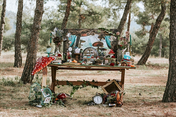 Παραμυθένια διακόσμηση βάπτισης με θέμα Alice in Wonderland
