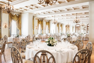 Φιλοξενήστε τις μοναδικές στιγμές μιας μαγικής δεξίωσης υπό το φως των πολυελαίων του Grand Ballroom, περιτριγυρισμένοι από την πολυτέλεια, αποτυπωμένη στις μεταξωτές κουρτίνες, τις επιλεγμένες αντίκες, τα πολύτιμα σερβίτσια, τα κομψά διακοσμητικά, και αφεθείτε στα χέρια των εξειδικευμένων συντονιστών γάμου, που θα προσφέρουν σ’ εσάς και τους καλεσμένους σας αξέχαστες στιγμές.