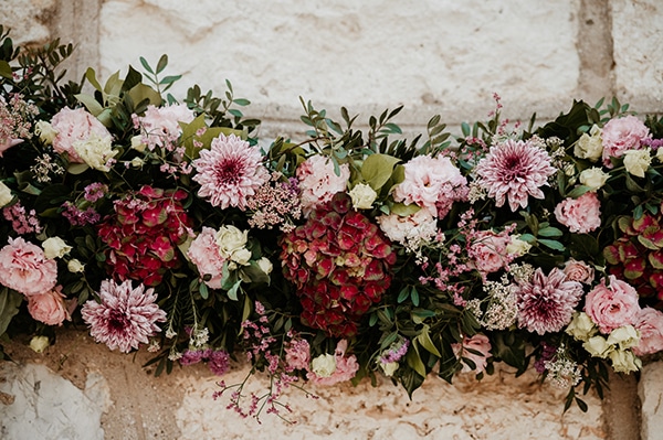 Διακόσμηση βάπτισης κοριτσιού με πλούσιο ανθοστολισμό και ζωηρά χρώματα