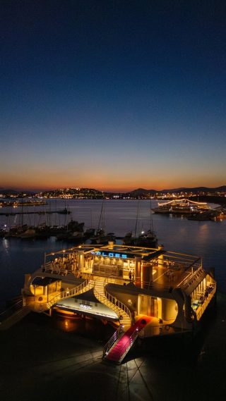 Ένας πλωτός χώρος 1.500 τ.μ. στο Φάληρο με εντυπωσιακό σχεδιασμό, καινοτόμες κατασκευαστικές τεχνικές και εξοπλισμό. Έχει υψηλή αισθητική, εκλεπτυσμένη λειτουργικότητα και ιδιαίτερο οικολογικό χαρακτήρα καθώς για την κατασκευή του χρησιμοποιήθηκαν φιλικά προς το περιβάλλον υλικά.