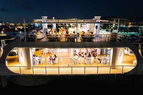 Ένας πλωτός χώρος 1.500 τ.μ. στο Φάληρο με εντυπωσιακό σχεδιασμό, καινοτόμες κατασκευαστικές τεχνικές και εξοπλισμό. Έχει υψηλή αισθητική, εκλεπτυσμένη λειτουργικότητα και ιδιαίτερο οικολογικό χαρακτήρα καθώς για την κατασκευή του χρησιμοποιήθηκαν φιλικά προς το περιβάλλον υλικά.