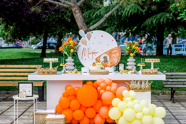Πρωτότυπες ιδέες βάπτισης κοριτσιού σε πορτοκαλί και κίτρινες αποχρώσεις και με θέμα τα φρούτα του καλοκαιριού