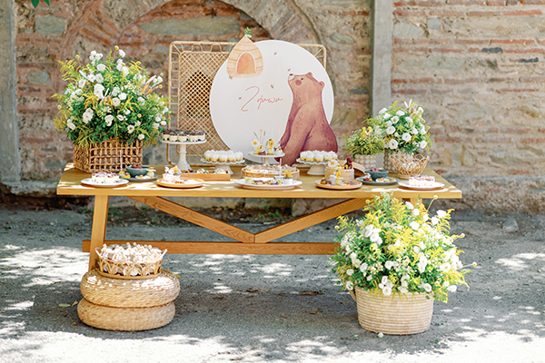 Ρουστίκ βάπτιση με θέμα τον αρκούδο και κίτρινες πινελιές