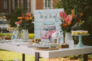 Καλοκαιρινή βάπτιση κοριτσιού στη Θεσσαλονίκη με κόκκινες κάλλες και θέμα το surf